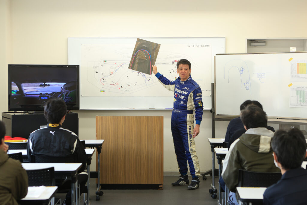まずは、ビデオ動画を見ながら、ガッツリと各コーナーの走り方を説明!