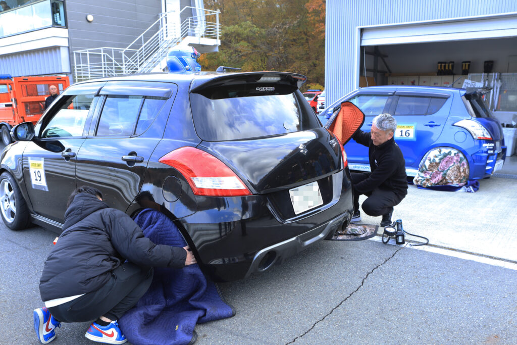また、使用するタイヤ銘柄によっては、タイヤウォーマーを使用しない方々も!