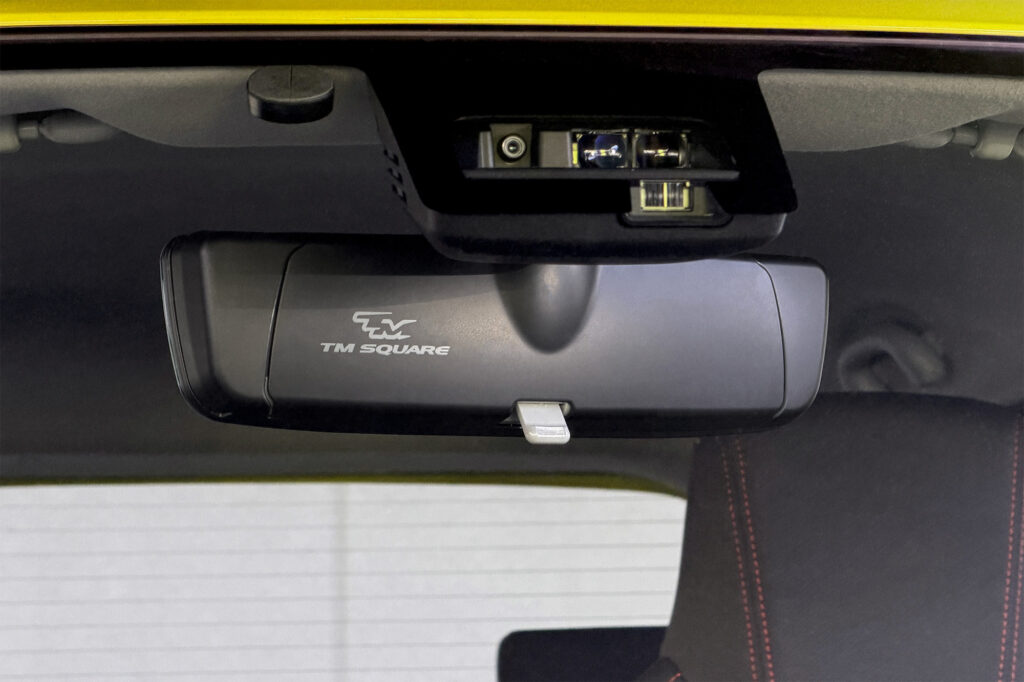 そして、そして、車外から見えるミラー背面カバーには、2段に配したTM-SQUAREのロゴが、TM-SQUAREブランドの商品であることを主張します。